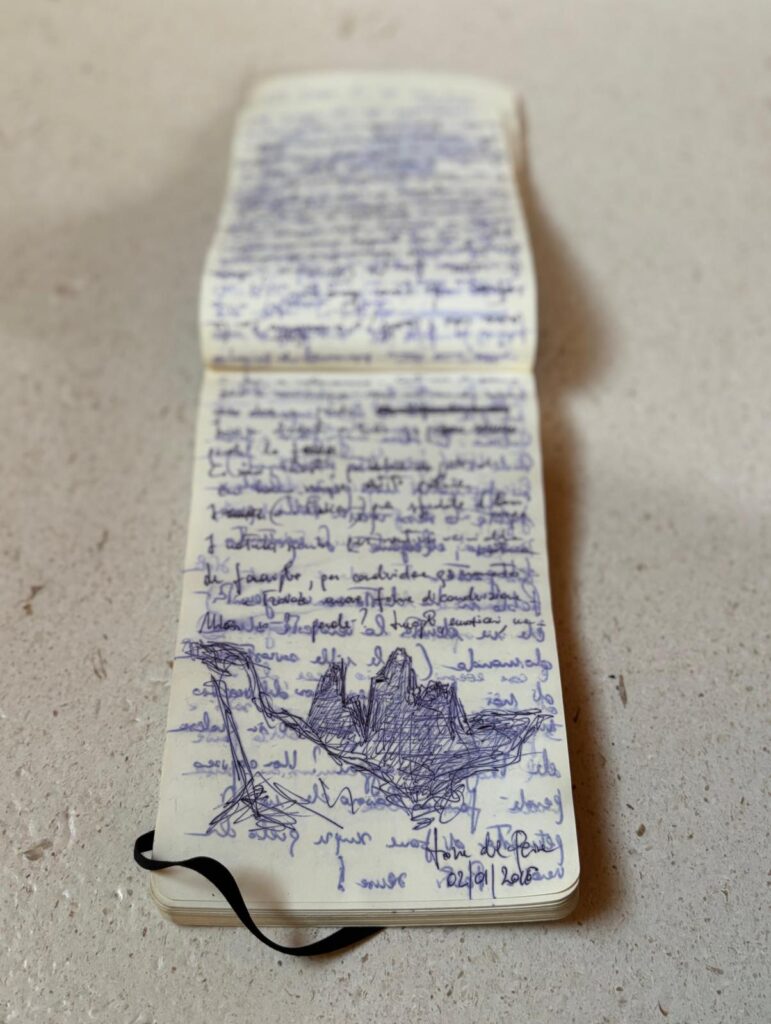 Tornato sconfitto nella meta ma non nell’animo, l’artista appunta sulla sua Moleskine le parole che seguono: